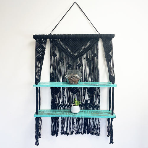 Black Macrame Hanging Shelves - Turquoise